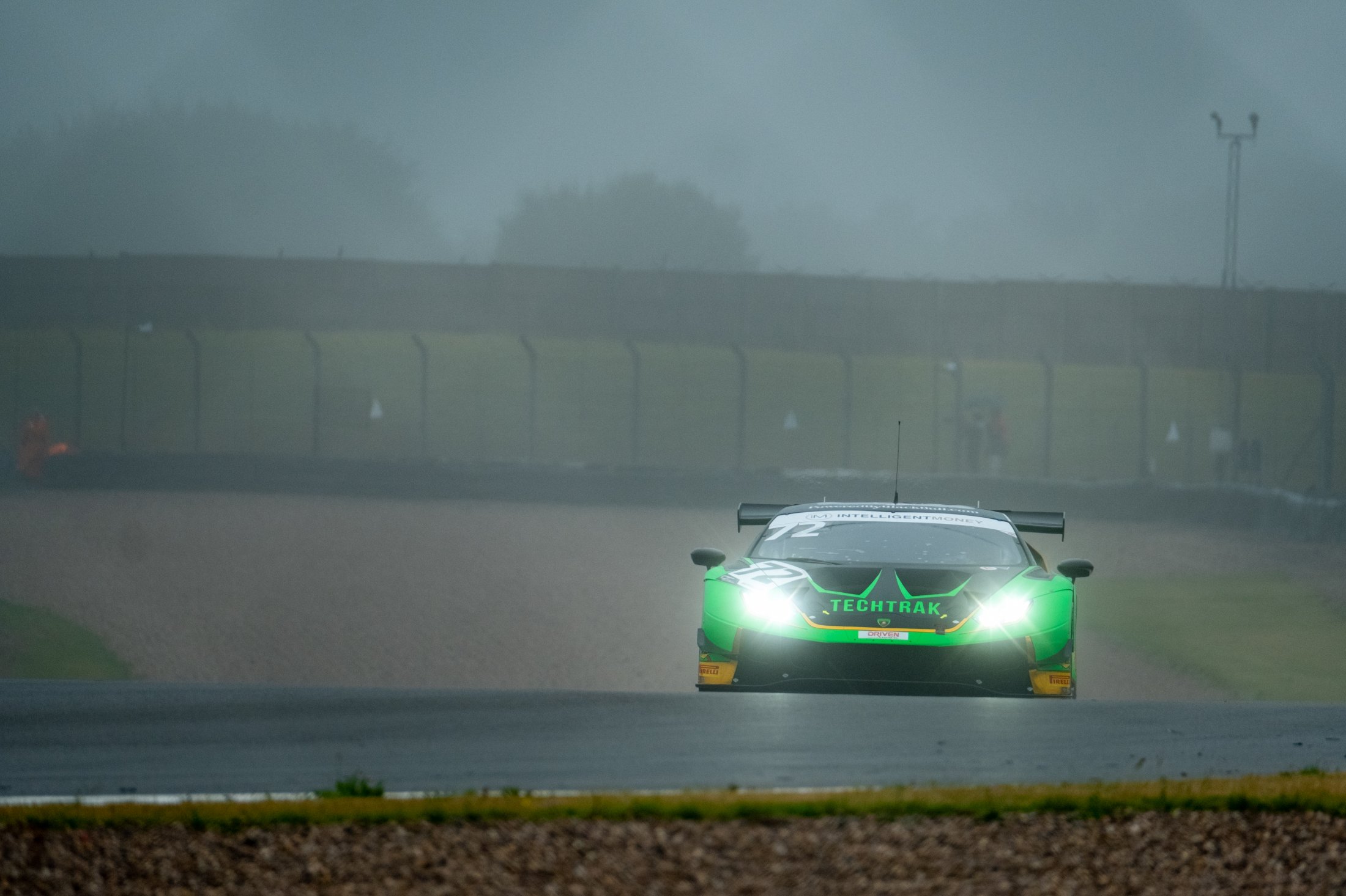 The Lamborghini Huracan GT3 EVO of Adam Balon (GBR) and Phil Keen (GBR) run by Barwell Motorsport at Coppice on the Donington Park Grand Prix circuit during the third round of the 2020 Intelligent Money British GT Championship season.