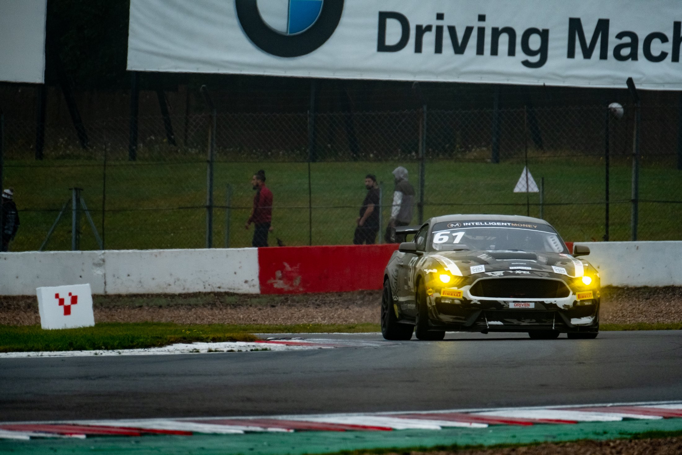 The Ford Mustang GT4 of Jordan Albert (GBR) and Matt Cowley (GBR) run by Academy Motorsport on the exhibition straight on the Donington Park Grand Prix circuit during the third round of the 2020 Intelligent Money British GT Championship season.