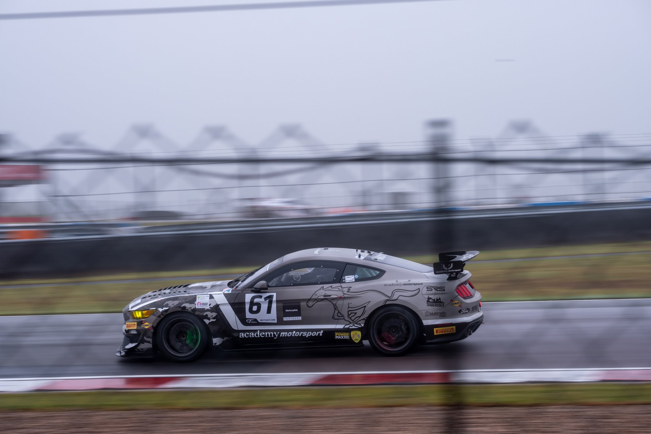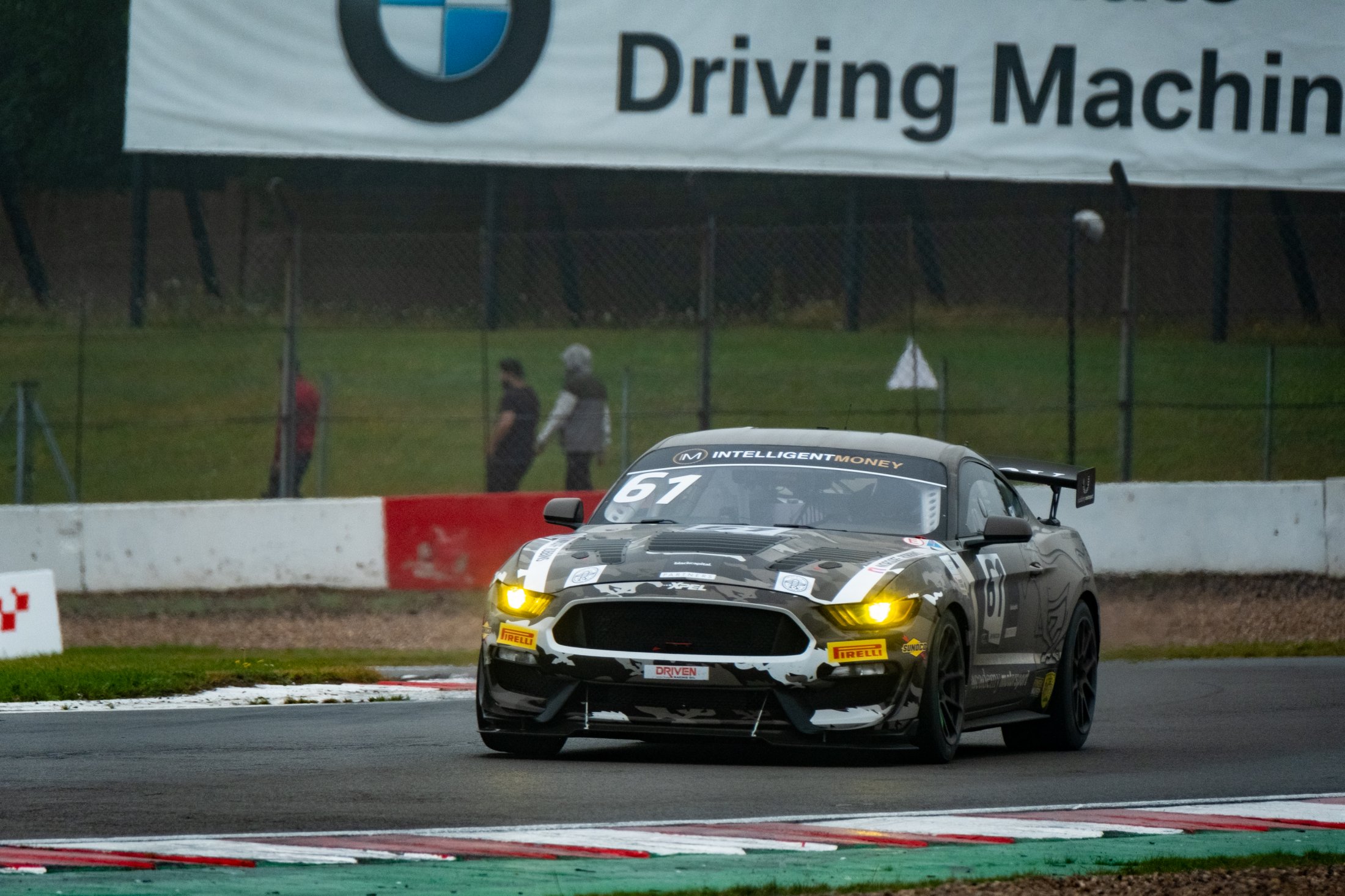 The Ford Mustang GT4 of Jordan Albert (GBR) and Matt Cowley (GBR) run by Academy Motorsport at Coppice on the Donington Park Grand Prix circuit during the third round of the 2020 Intelligent Money British GT Championship season.