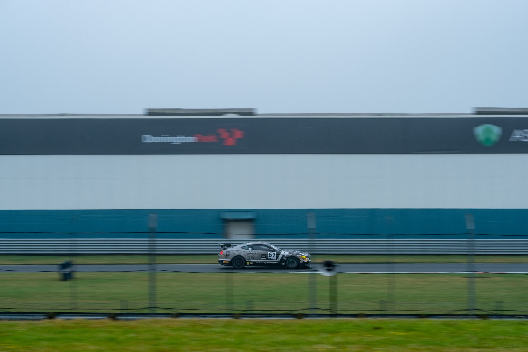 The Ford Mustang GT4 of Jordan Albert (GBR) and Matt Cowley (GBR) run by Academy Motorsport at McLeans on the Donington Park Grand Prix circuit during the third round of the 2020 Intelligent Money British GT Championship season.