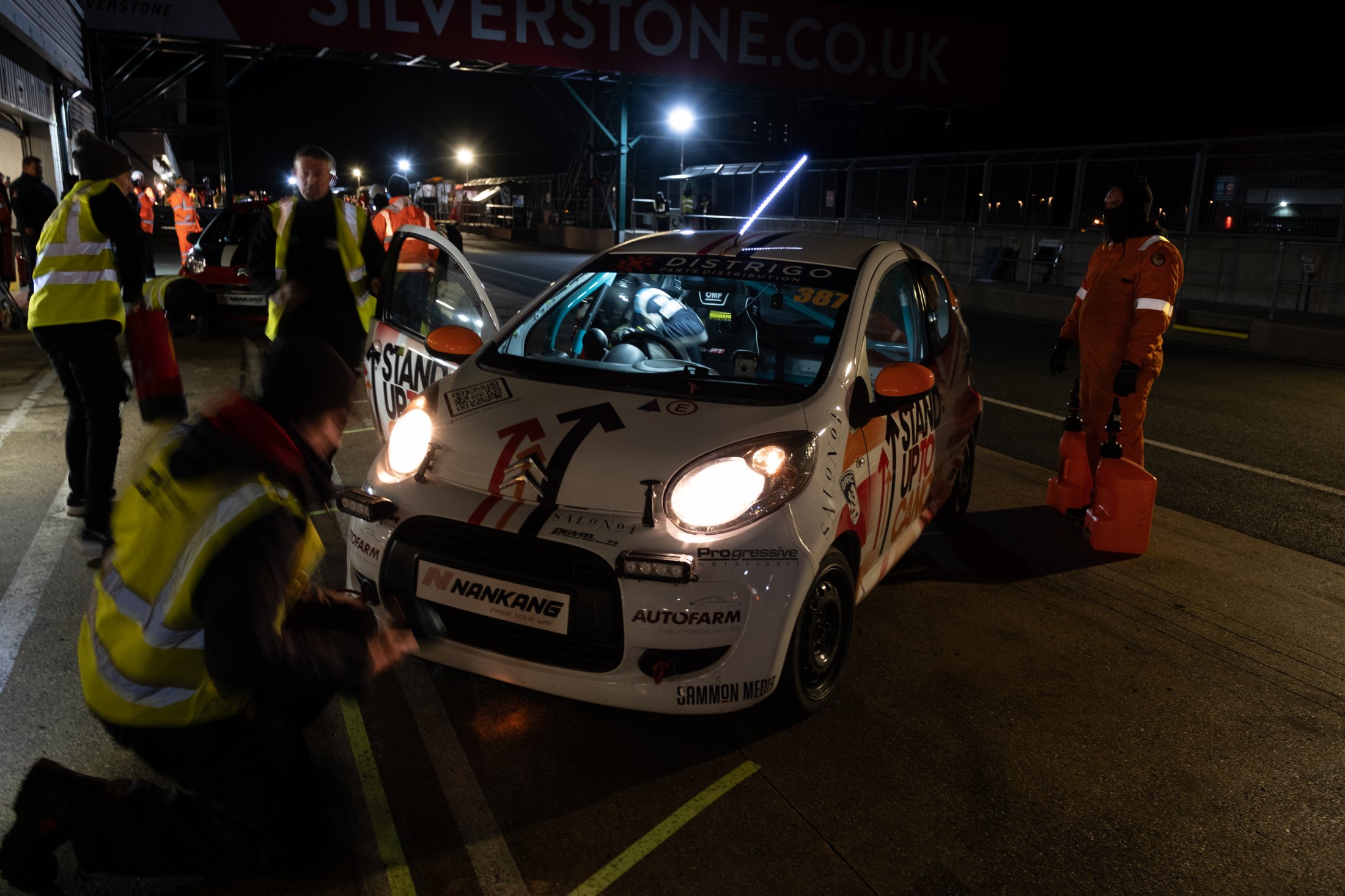 A pit stop for the Mark Henderson, Tim Bates, Jeff Curtis, Michael Wastie, Anthony Wilds and Steve Wood sharing the #389 GMP Developments Stand Up 2 Cancer run Citroen C1 during the 2019 Trade Team Citroen C1 Challenge 24 Hour race at Silverstone.