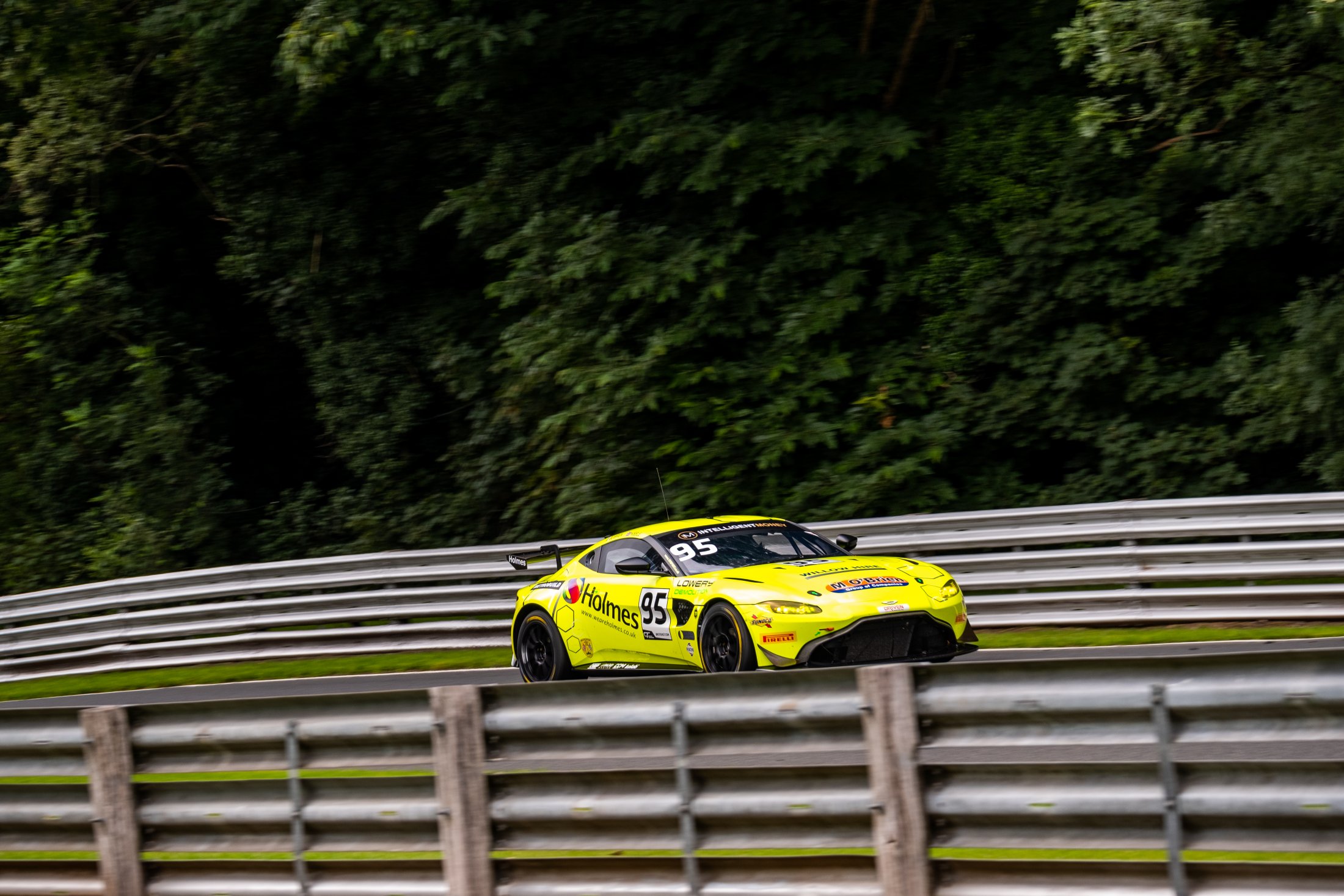 The Aston Martin V8 Vantage AMR GT4 of Connor O’Brien (GBR) and Patrick Kibble (GBR) run by TF Sport at the Warwick Bridge on the Oulton Park International circuit during the opening round of the 2020 Intelligent Money British GT Championship season.